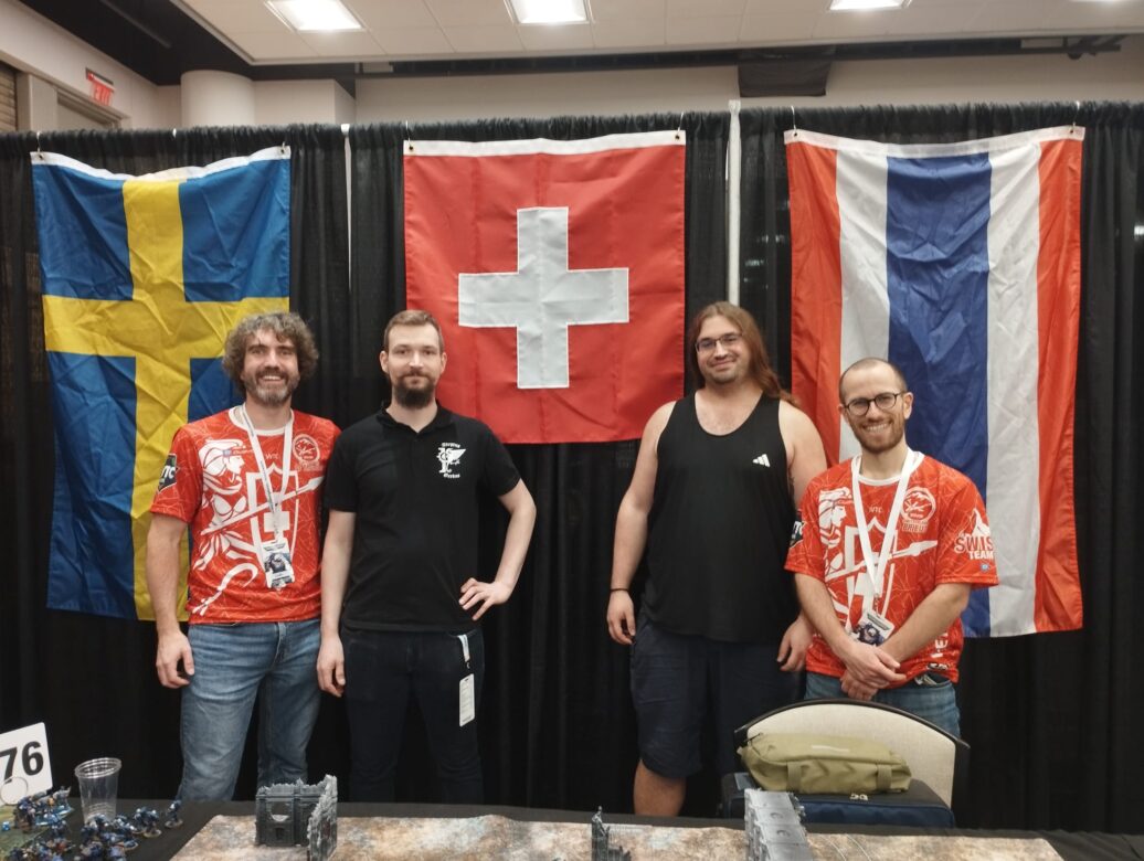 J’ai gagné ma place au WCW le 8 juin 2025 au Chesaux Bucaneer’s Open 2025, l’un des plus grands tournois 40k de Suisse. Au total, la délégation helvète a envoyé cette année quatre représentants, et j’étais heureux d’en faire partie. J’aimerais dire que j’ai passé les mois suivants à m’entraîner pour ce qui allait être le tournoi le plus prestigieux auquel j’allais participer, mais je n’ai pas vraiment pris le temps de le faire. À la place, j’ai beaucoup joué sans forcément me mettre en condition ou en appliquant les spécificités des WCW, notamment pour aider des amis à se préparer à d’autres tournois. Le plus important pour moi concernant ce Championnat du Monde, c’était surtout de participer à un événement majeur réunissant près de 1000 personnes, dont plus de 400 pour Warhammer 40,000 uniquement.